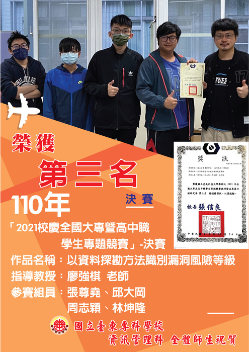 2021校慶全國大專暨高中職學生專題競賽決賽 勇奪第三名!!!