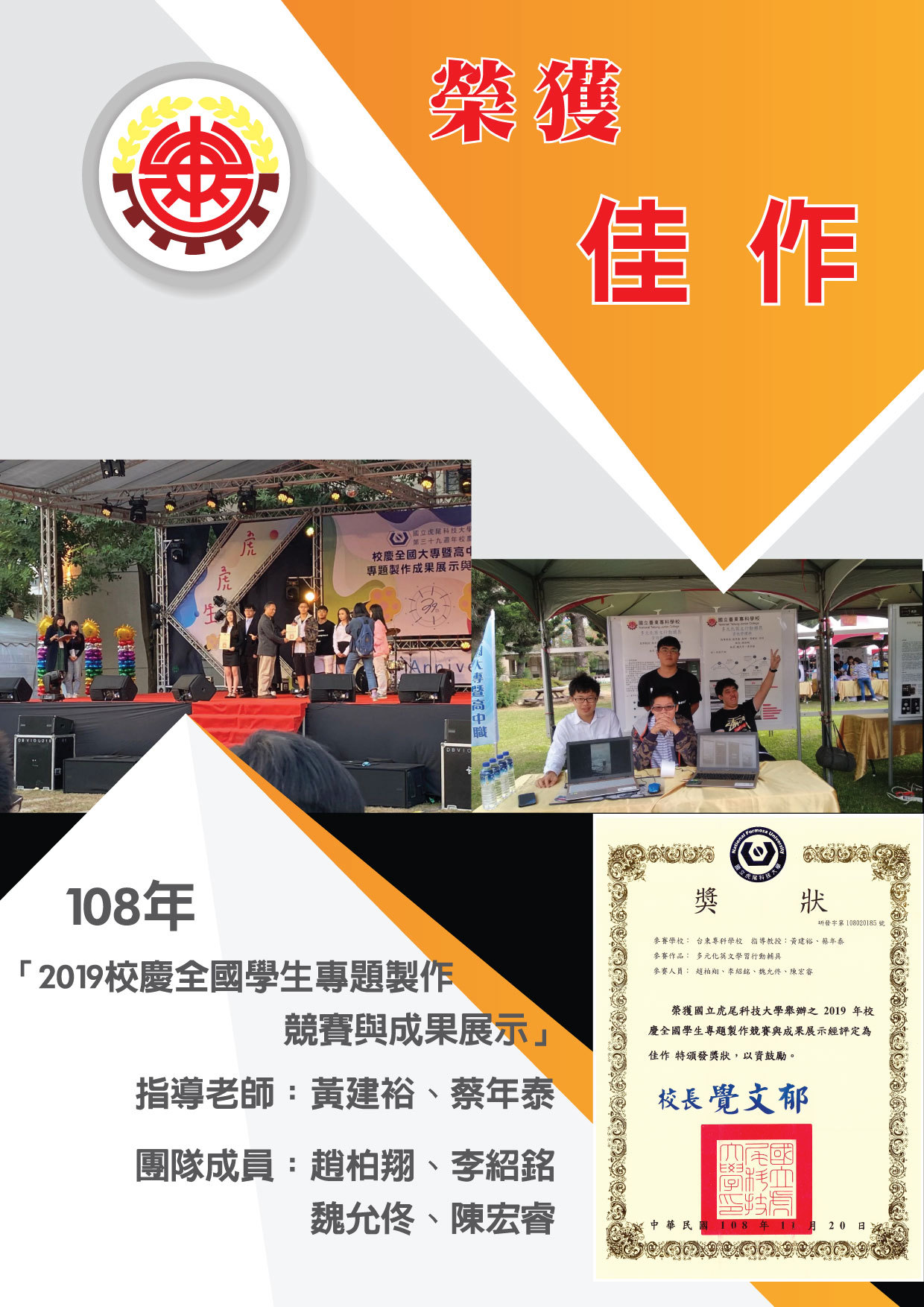 「2019校慶全國學生專題製作競賽與成果展示」 榮獲佳作
